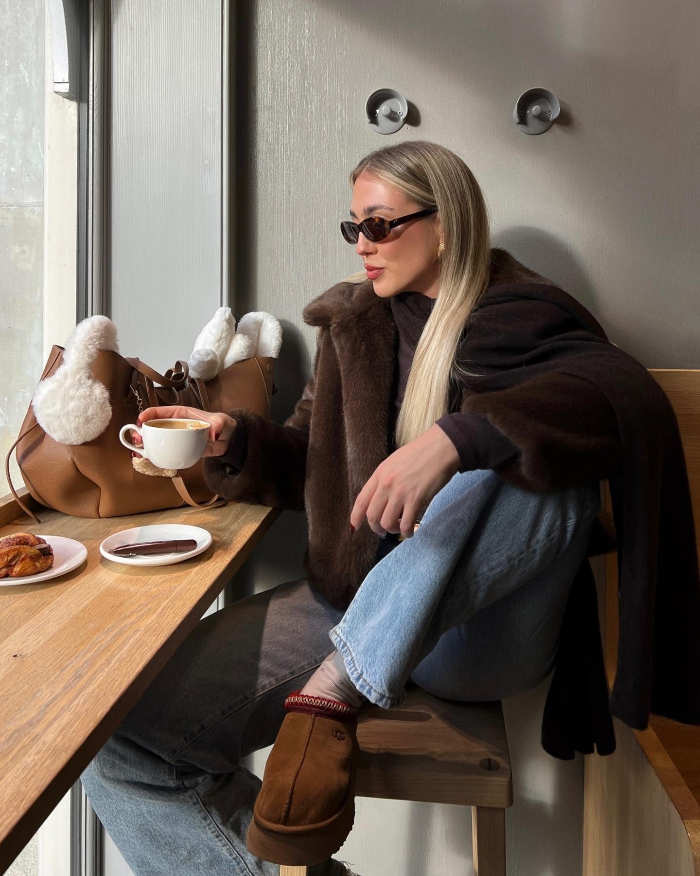 Artificial Fur Effect Lapel Loose Fashionable Jacket Women